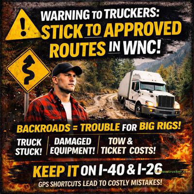 🚫 NCDOT is fed up – The North Carolina Department of Transportation is flat-out telling drivers: “Stop trying to outsmart the signs.” They're seeing too many truckers skip designated routes and head down scenic roads not built for semis.