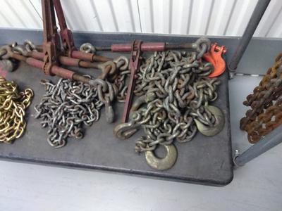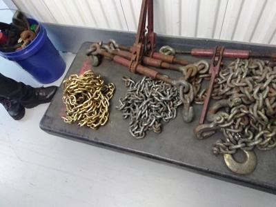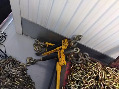 Full package of flatbed equipment, a partial package and lots of odd stuff. I have 1/2" chains, 5/16 chains and 3/8 chains. I have ratchet binders for all, some breakover some not. Many 4" straps and binders with chain ends.